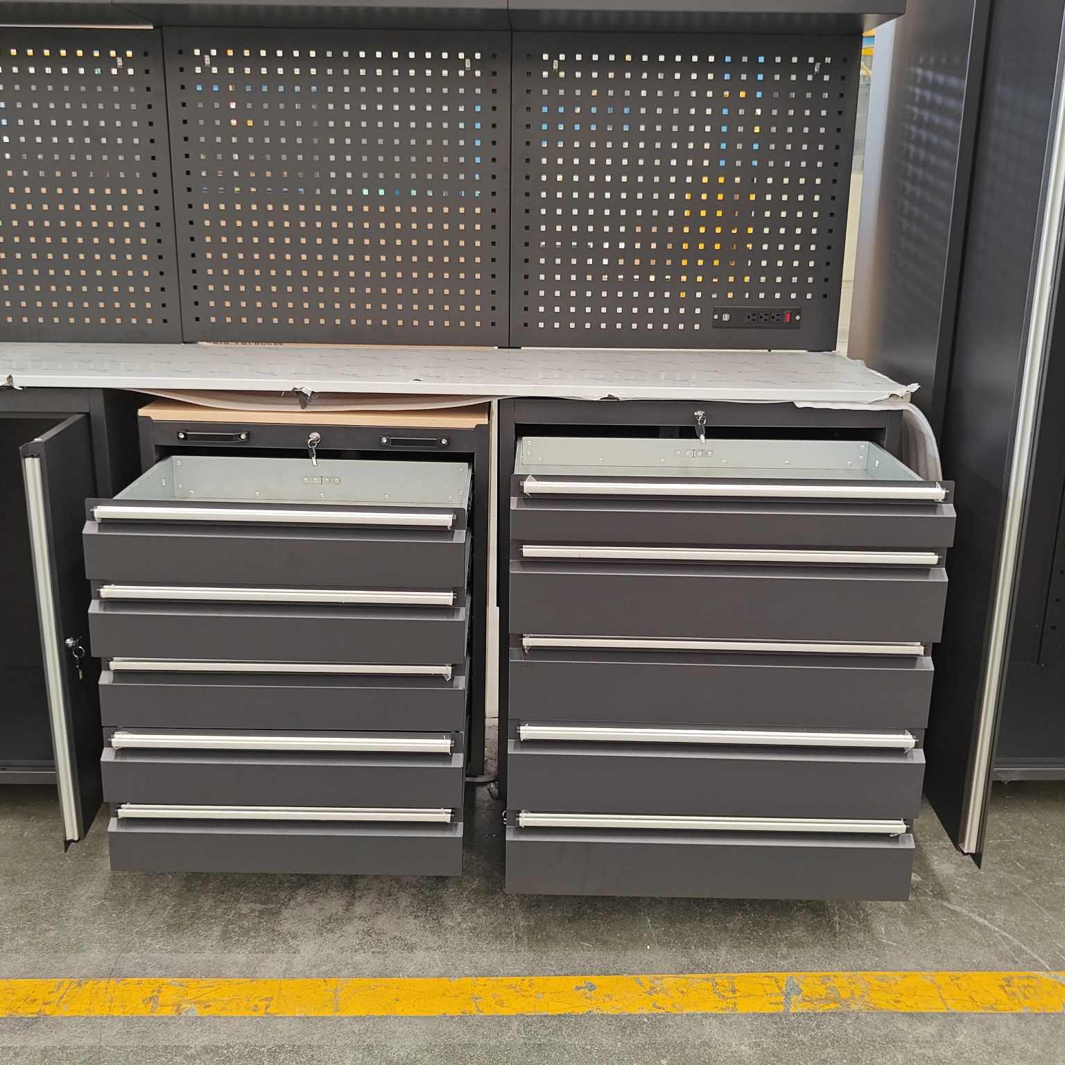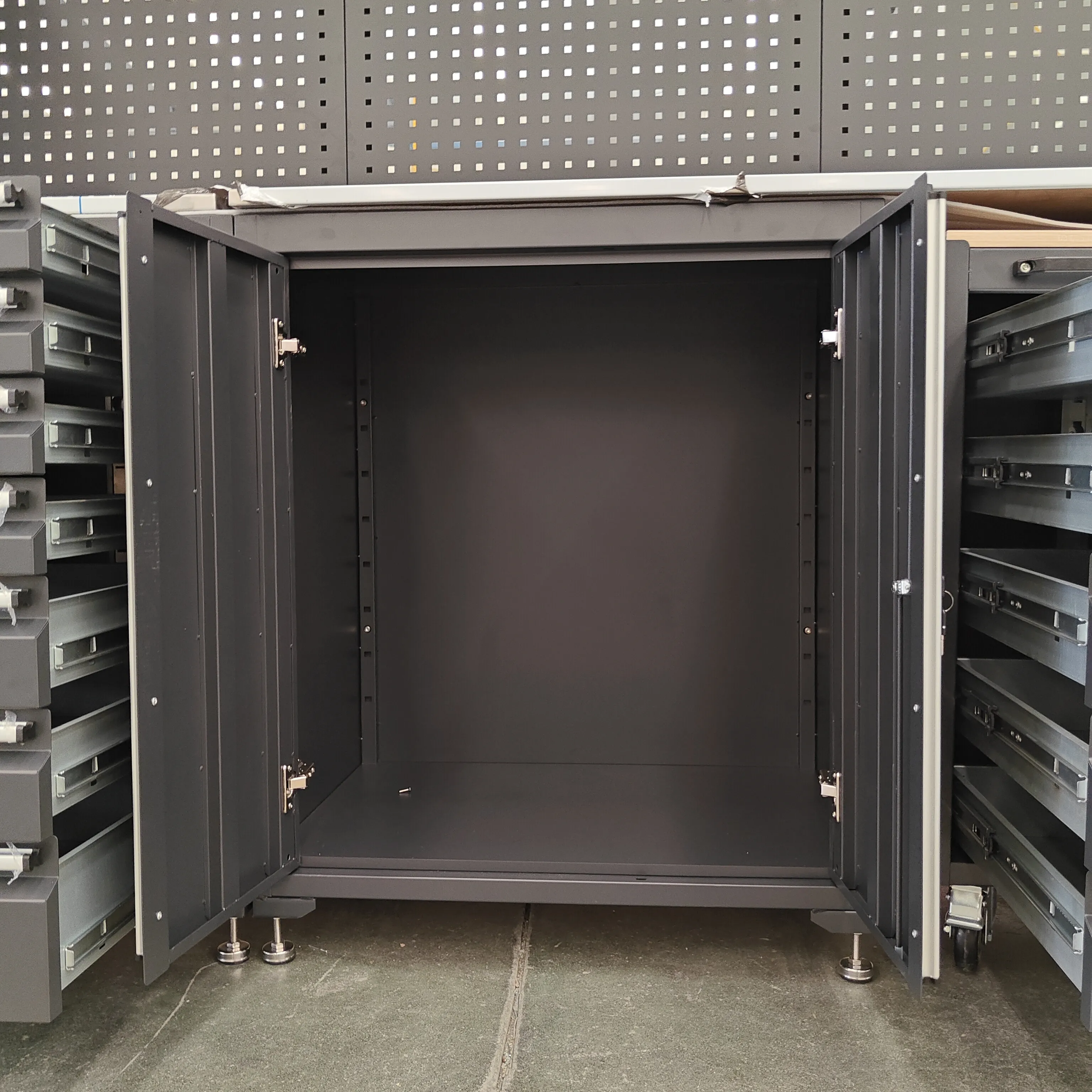हेवी-ड्यूटी टूल कॅबिनेटमध्ये प्रत्येक ड्रॉवरसाठी खुल्या शेल्फ डिझाइनसह एकाधिक ड्रॉवर आहेत, जे वेगवेगळ्या आकाराच्या साधनांसाठी योग्य आहेत.