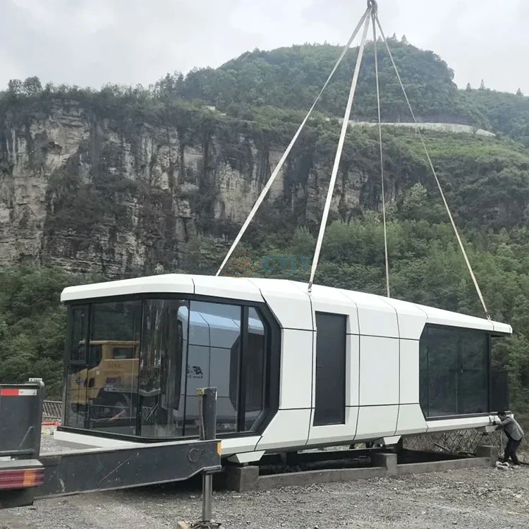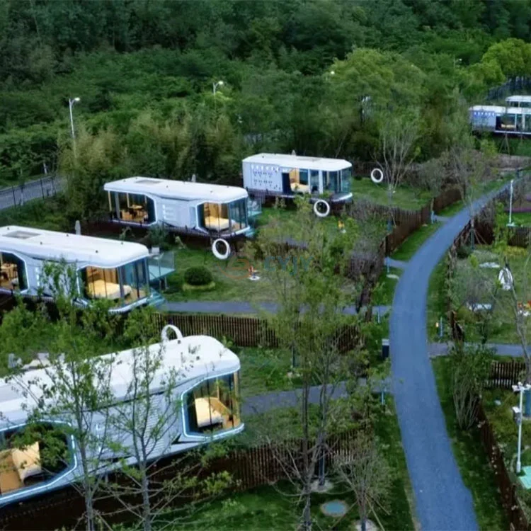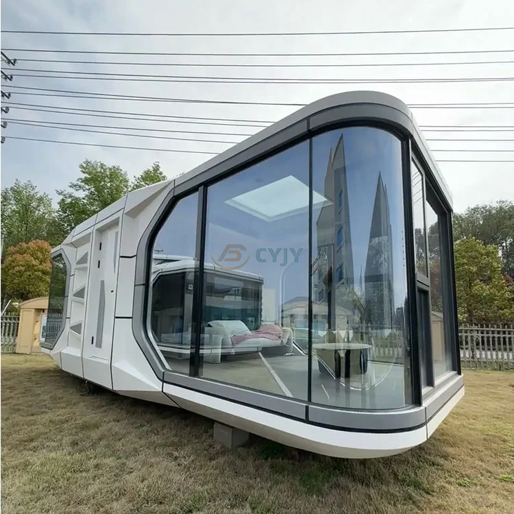 मल्टीफंक्शनल स्पेस कॅप्सूलचे आतील भाग मॉड्यूलर डिझाइनचा अवलंब करते, बेडरूम, लिव्हिंग रूम, स्वयंपाकघर, स्नानगृह इत्यादी सारख्या कार्यात्मक क्षेत्राचे तर्कसंगतपणे विभाजित करते आणि उच्च जागेचा उपयोग आहे. फर्निचरची रचना लवचिक आहे, जसे की सोफे बेडमध्ये रूपांतरित केले जाऊ शकतात, कॅबिनेट आणि जेवणाचे सारण्या दुमडल्या जाऊ शकतात आणि वेगवेगळ्या जिवंत दृश्यांच्या गरजा भागविण्यासाठी मागे घेता येतात. पॅनोरामिक स्काइलाइट आणि पारदर्शक काचेच्या डिझाइनमुळे प्रकाश आणि दृष्टी वाढते, यामुळे रहिवाशांना निसर्गाशी अखंडपणे कनेक्ट होऊ शकते.