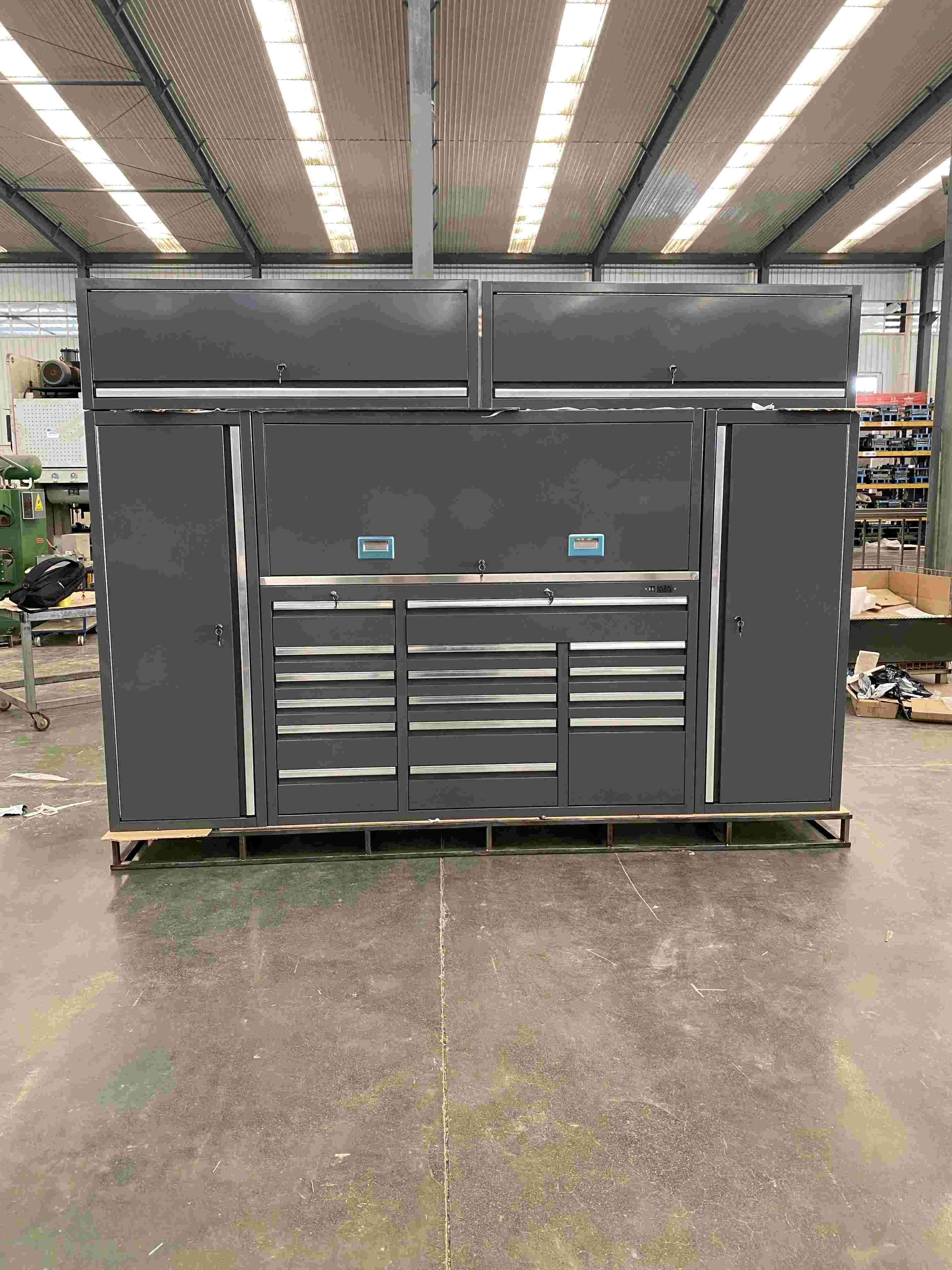 व्यावसायिक साधन व्यवस्थापन: कार उत्साही आणि डीआयवाय तज्ञांसाठी विशेष साधन विभाजने प्रदान करा, जसे की पॉवर टूल चार्जिंग स्टेशन आणि पेंट कॅनसाठी लीक-प्रूफ ट्रे.