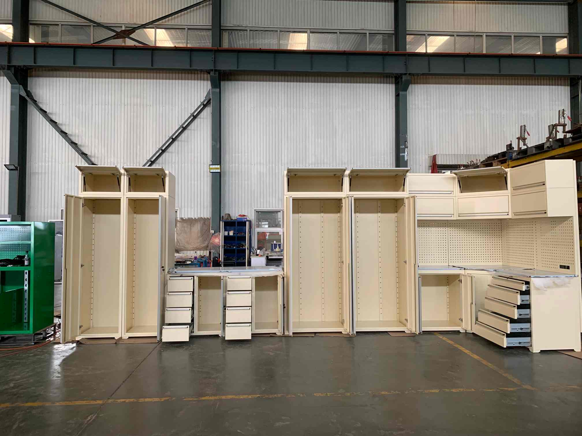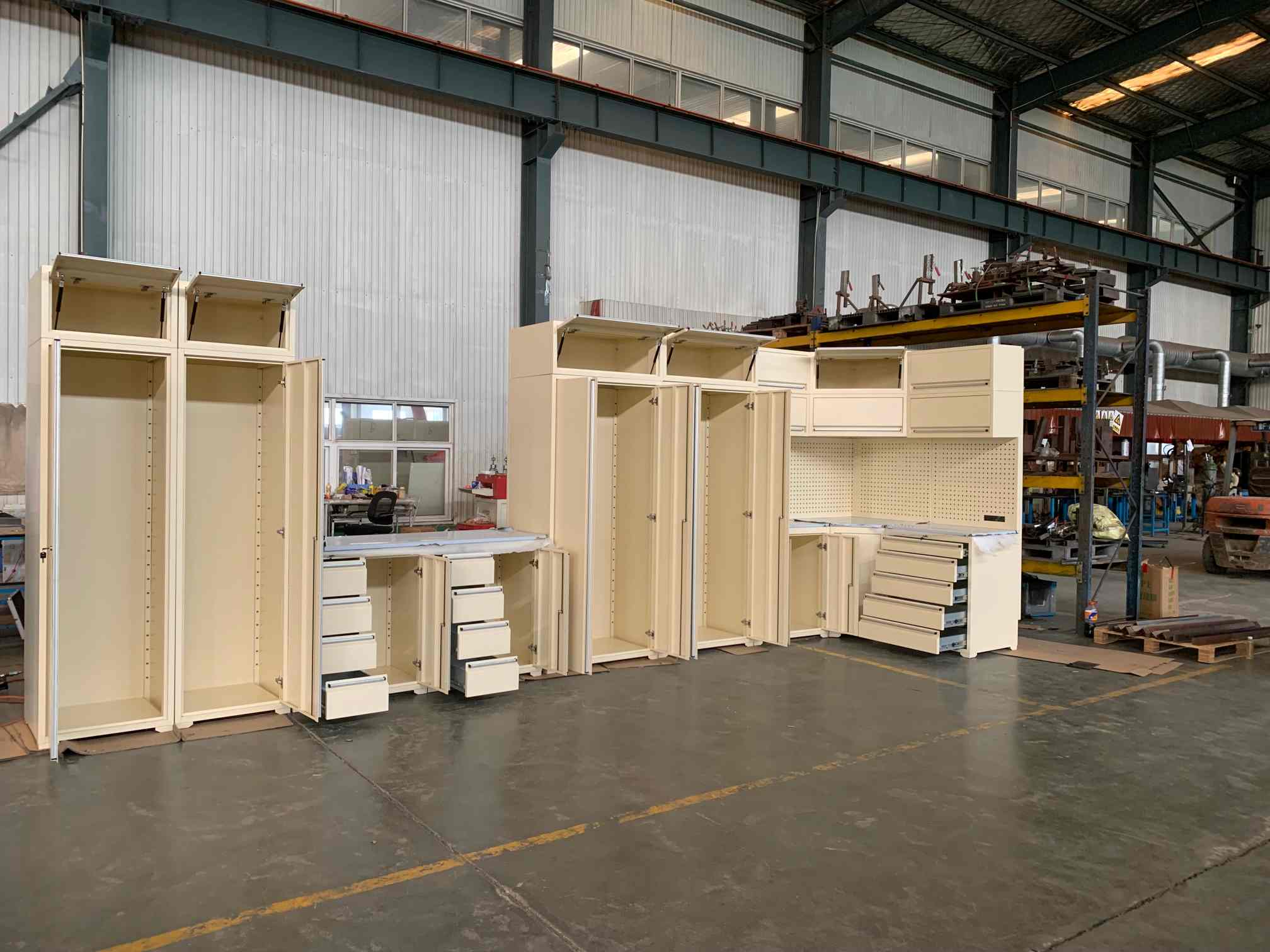 टूल कॅबिनेट, टूल वर्कबेंच, गॅरेज कॅबिनेट, टूल पिट कार्ट, टूल बॉक्स, छातीचा or क्सेसर, कंटेनर हाऊस इत्यादी.